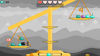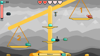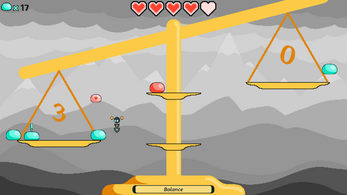 In this arcade-style 2d platforming arena battler, your goal is to defeat as many slimes as possible, however, it won't be easy. Getting hit by slimes diminishes your health, and allowing The Grand Scale to tilt too far to one side will cause your balance meter to slowly drain. If either your health or your balance meter reaches zero, it's game over and time to try again.